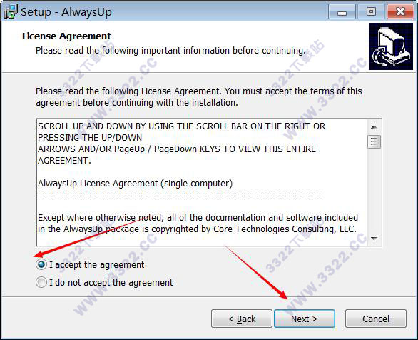 2、勾選“I accept the agreement(我接受這個(gè)協(xié)議)”,協(xié)議的內(nèi)容自行決定是否要瀏覽,可直接跳過(guò)內(nèi)容瀏覽點(diǎn)擊next