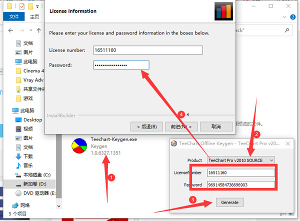5、到了需要序列號的步驟后打開Crack文件夾內(nèi)的“Teechart-Keygen.exe”選擇“TeeChart Pro v2010 SOURCE”點(diǎn)擊“generate”將獲取的序列號粘貼復(fù)制到軟件安裝程序?qū)?yīng)框框并點(diǎn)擊“Next”。
