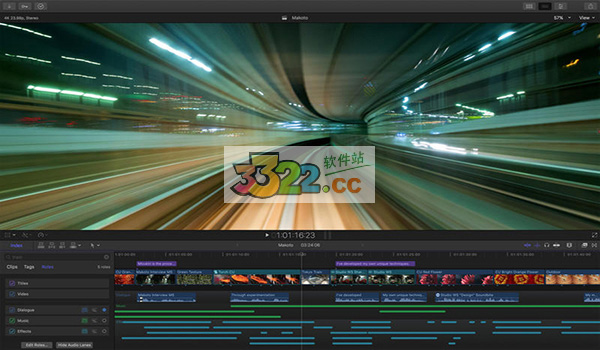 精彩片段聯(lián)網(wǎng)控制,你可將B卷、聲效和音樂(lè)等精彩片段輕輕松松安置在時(shí)間線里,那樣他們就能伴隨著你改動(dòng)而挪動(dòng),哪怕是在最復(fù)雜的工程中亦是如此。如果你將二級(jí)原素拖至?xí)r間線處時(shí),F(xiàn)inalCutPro就會(huì)自動(dòng)建立一個(gè)片段聯(lián)接。