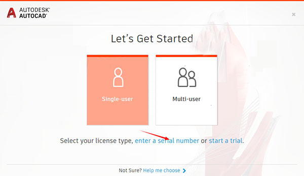 3、然后點(diǎn)擊enter a serial number輸入cad2020序列號(hào)和密鑰,由于破解過程中需要使用序列號(hào) 666-69696969, 667-98989898, 400-45454545 066-66666666 或任何相匹配的模板,而使用產(chǎn)品序列號(hào) (每個(gè)軟件序列號(hào)是不同的,具體在Product KEY.txt查找,如kkx分享的截圖: