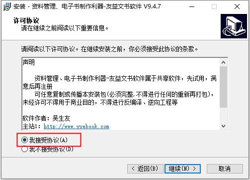 2、雙擊“友益文書軟件安裝包(完全版)v9.6.1.exe”開始安裝軟件;