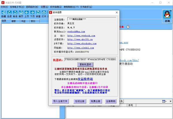 友益文書是一款功能強(qiáng)大且專業(yè)的電子書制作軟件,支持htm、word、excel、pdf、exe、txt、rtf、GIF、JPG、PNG、Flash等各種格式的文件進(jìn)行導(dǎo)入使用,從而可以很好的滿足不同用戶們的使用需求。益文書提供專業(yè)的文書服務(wù),有經(jīng)驗(yàn)豐富的文書寫手,可以根據(jù)用戶的具體情況量身定制出優(yōu)質(zhì)的申請文書。此外,還有一群資深留學(xué)顧問團(tuán)隊(duì)幫助用戶定位適合他們的學(xué)校和專業(yè),并提供精準(zhǔn)的留學(xué)建議。本文中kkx小編給大家分享的這款友益文書集合資料管理、電子書制作、翻頁電子書制作、多媒體課件管理等于一體的電子書制作軟件,并且內(nèi)置注冊機(jī),可以完美破解軟件,希望大家會(huì)喜歡!