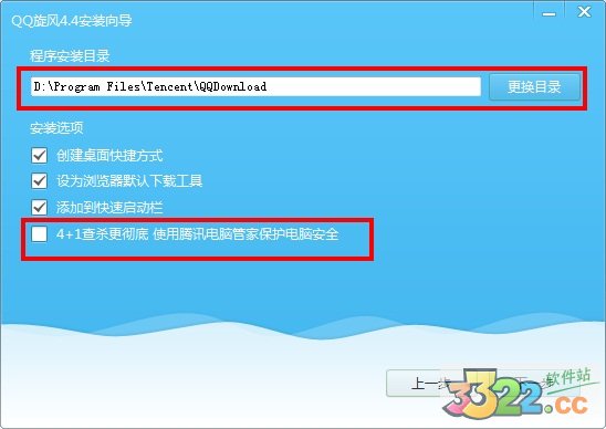 qq旋風作為一款下載工具,所以需要的空間肯定很大建議軟件的安裝路徑選擇C盤之外的輔助盤進行安裝,同時如下圖,選擇項的第四個選項不建議勾選,因為那是捆綁軟件。