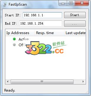 啟動IPScan,在“IP范圍”文本框中輸入起始IP和終止IP,單擊其窗口中最右邊的“開始”按鈕即可