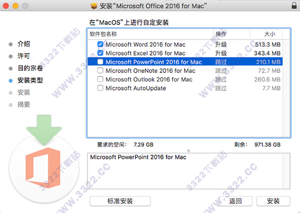 5、接著設(shè)置安裝類型,你可以點(diǎn)擊“自定”按鈕選項(xiàng),然后勾選你需要安裝的那一個程序,在這里小偉就只需要Word和Excel了,朋友們根據(jù)自己的實(shí)際需求進(jìn)行選擇就好,選擇完成之后,我們點(diǎn)擊“安裝”按鈕,即可