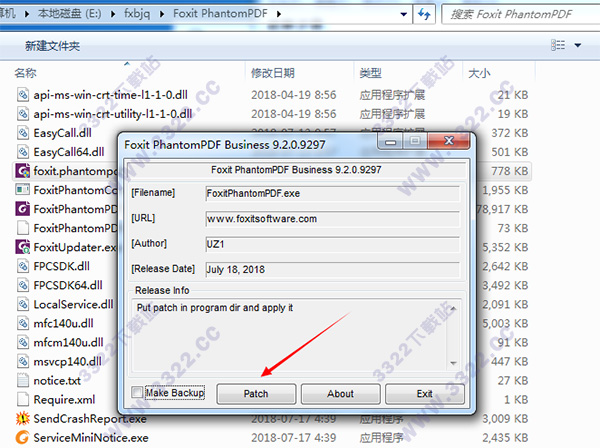 2、將[foxit.phantompdf.business.9.2.0.9297-patch UZ1.exe]拷貝到運(yùn)行福昕鳳騰安裝目錄下運(yùn)行,點(diǎn)擊[Patch]按鈕