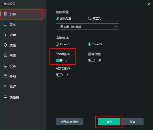 2、打開設(shè)置后,點擊設(shè)置窗口中的【高級】,在高級設(shè)置中勾選ROOt模式,然后點擊【保存】,重啟模擬器就可以開啟ROOT權(quán)限了。