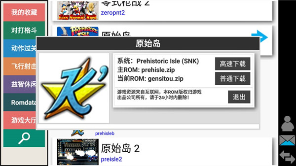 1、下載安裝kawaks街機(jī)模擬器破解版,運(yùn)行后如下圖所示,包含了對(duì)打格斗、動(dòng)作過關(guān)、飛行射擊、益智休閑等