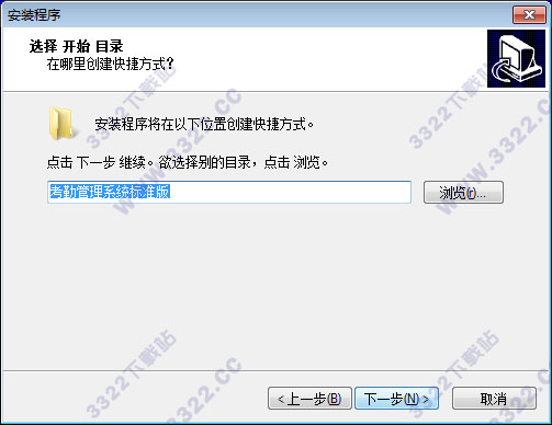 7、安裝軟件文件夾,并命名考勤管理系統(tǒng)標(biāo)準(zhǔn)版,修改點(diǎn)擊瀏覽按鈕,下一步