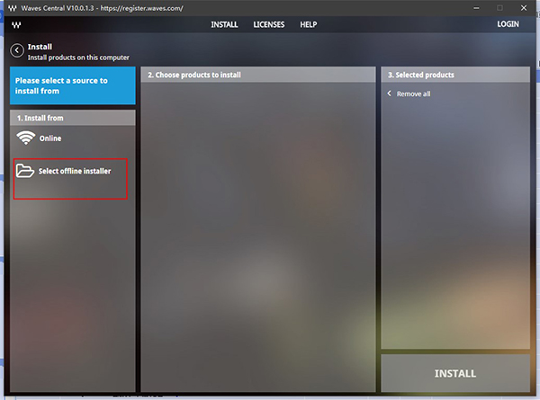 1、下載安裝Waves軟件,打開(kāi)“install products”開(kāi)始安裝插件;