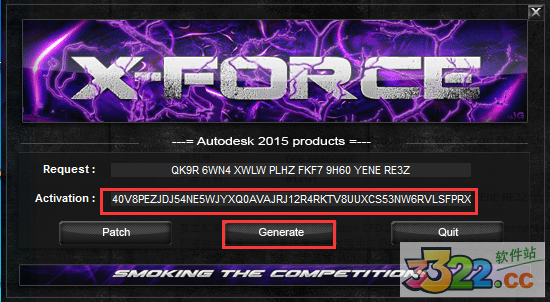 6、點擊Generate算出激活碼,在注冊機(jī)里點補丁鍵否則無法激活提示注冊碼不正確。這條是激活的關(guān)鍵所在一定要算好之后先點擊補丁鍵否則就會提示激活碼無效,如kkx分享的截圖: