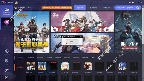 5、安裝好tcgame之后運(yùn)行到需要登錄的界面,運(yùn)行點(diǎn)擊破解補(bǔ)丁上的成為VIP即可如下圖所示