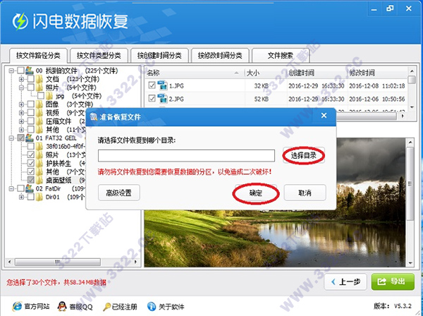 4)彈出恢復(fù)成功的提示信息。 您可以點(diǎn)擊鏈接直接進(jìn)入導(dǎo)出數(shù)據(jù)目錄。