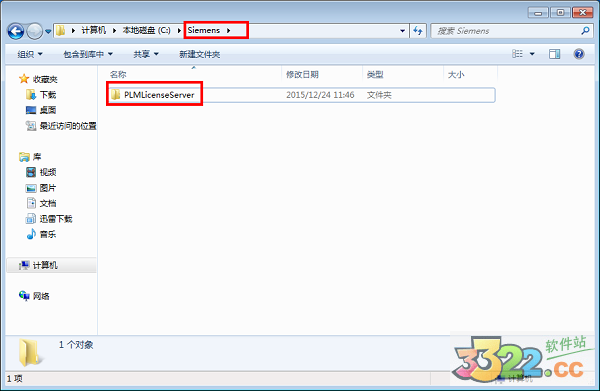 2、然后打開本款軟件的破解文件夾,找到PLMLicenseServer文件將其復(fù)制到新建好的Siemens文件中