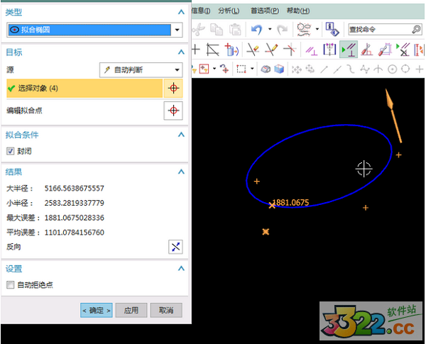 7、擬合橢圓的使用方法與圓形一樣,只是得到的結(jié)果不一樣;如下圖: