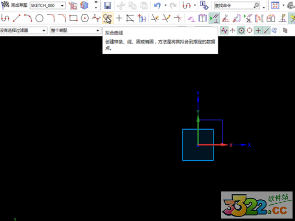 3、先在草圖繪圖工具上找到擬合樣條工具,如下圖