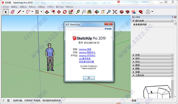 10、至此,草圖大師2019 pro中文破解版成功激活,現(xiàn)在可以無限制免費使用,如圖所示: