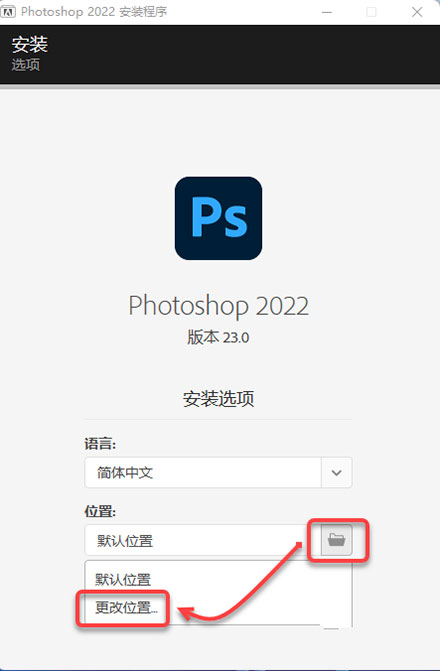 6、雙擊“Set-up.exe”,選擇簡(jiǎn)體中文語(yǔ)言,自定義安裝目錄安裝ps2022;