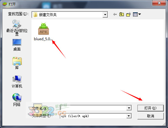 2、找到要添加的apk文件,選中后點(diǎn)擊“打開(kāi)”,軟件就會(huì)自動(dòng)進(jìn)行安裝
