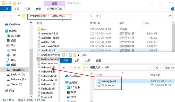 1、下載解壓得到DiskGenius安裝包和破解補(bǔ)?。?br />