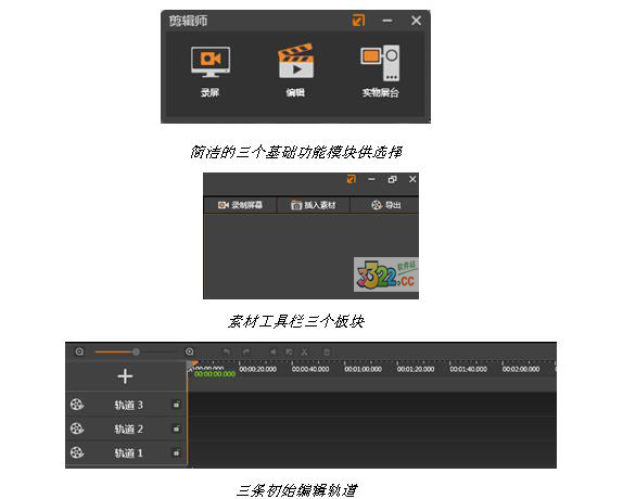 對比CamtasiaStudio8,剪輯師的界面明顯更為簡潔,純中文版的操作語言也更適合國內(nèi)用戶使用。