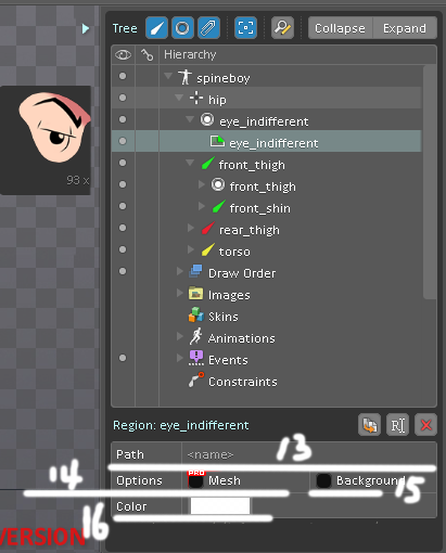 d)圖片路徑:這里顯示硬盤上的圖片資源。Spine只是從路徑引用圖片,并沒有把文件導(dǎo)進(jìn)項(xiàng)目。只是原封不動(dòng)的顯示硬盤上文件夾的內(nèi)容。