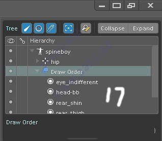 c)顯示層級(jí):顯示層和骨骼層級(jí)是兩個(gè)概念。圖片前后遮擋關(guān)系,在這里調(diào)整。