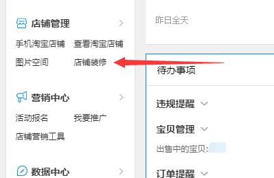 2、在界面的橫向工作欄中選擇店鋪管理,找到【店鋪裝修】選項