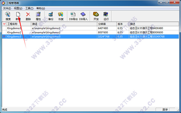 1、雙擊運(yùn)行軟件,打開(kāi)工程管理器點(diǎn)擊新建
