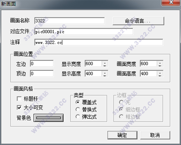8、用戶根據(jù)需要輸入畫(huà)面數(shù)據(jù),點(diǎn)擊確定