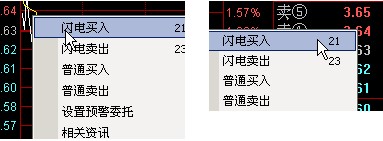 組合窗口上右鍵點擊,在彈出的菜單中選擇閃電買入\閃電賣出,在盤口的交易價格上點擊右鍵,在彈出窗口上選擇閃電買入,或者閃電賣出: