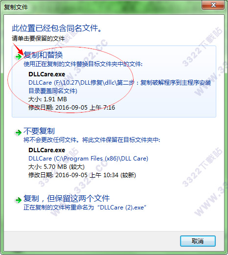 1.安裝好后,先不要打開軟件,回到數(shù)據(jù)包中將破解文件“DLLCare.exe”復制到軟件的安裝目錄中“C:\Program Files (x86)\DLL Care”