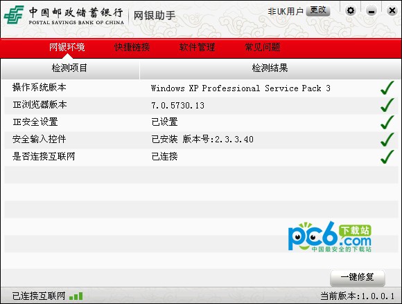 郵儲銀行網(wǎng)銀助手是一款適用于使用郵政儲蓄卡的用戶在電腦上進行交易轉(zhuǎn)賬之前必備的輔助軟件,因為很多電腦上正常情況下是無法直接登錄郵儲網(wǎng)站的,會遇到各種頭疼的問題,此時你可以使用郵儲銀行網(wǎng)銀助手一鍵完成修復,再也不用我們多做一些麻煩是事!