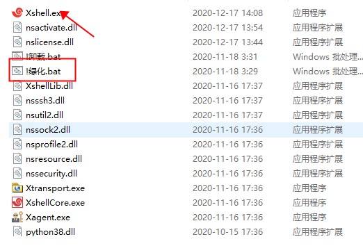 2、打開(kāi)chnegxu文件夾,找到Xshell.exe和綠化.bat程序;