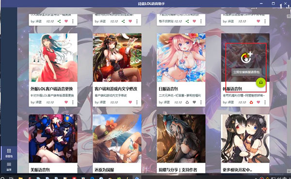 5、以韓服語音包為例子,點(diǎn)擊小卡片,選擇立即安裝;