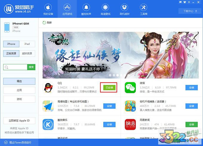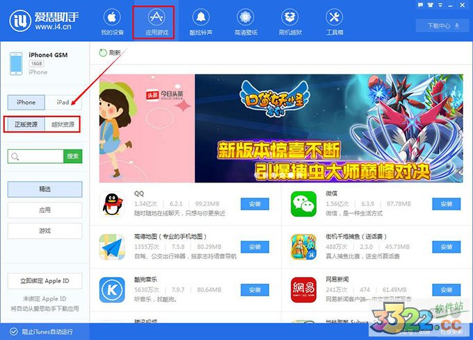 2.在愛(ài)思助手PC版 V6中,我們給大家分了三大類,您可以直接搜索下載您想要的 APP應(yīng)用,也可以進(jìn)入我們的分類去選擇你喜歡的應(yīng)用;此外,“應(yīng)用“和”“游戲”里,我們另外又劃分出了推薦、專題、流行、月排行、總排行等,讓你一目了然小伙伴們都愛(ài)玩什么;