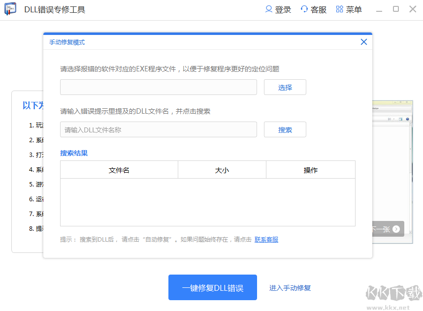 2.選擇一鍵修復(fù)DLL錯(cuò)誤或者進(jìn)入手動(dòng)修復(fù)