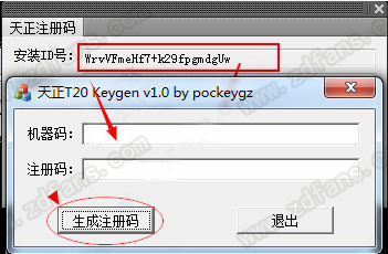 3、然后打開軟件包,運(yùn)行注冊(cè)機(jī)文件T20Keygen_v2.00.exe,選中安裝IDh號(hào)復(fù)制到注冊(cè)機(jī)的機(jī)器碼中,并點(diǎn)擊“生成注冊(cè)碼”按鈕。