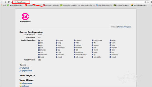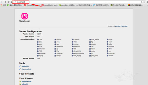 1、先來查看一下wamp是否啟動成功,打開瀏覽器,在地址欄輸入localhost,如圖說明成功;
