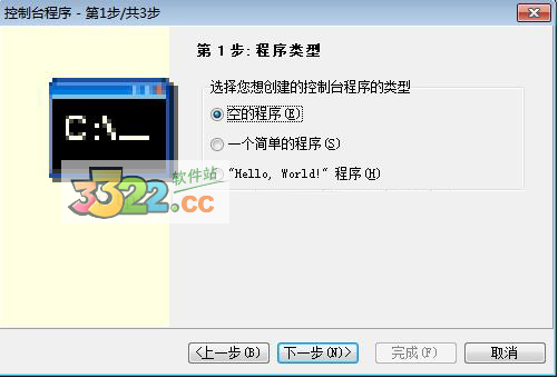 4、出現控制臺共三步的步驟。點擊空的程序,點擊下一步