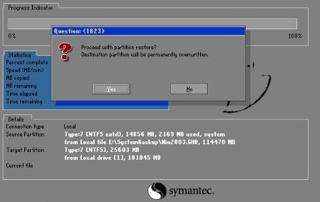 7、點(diǎn)擊【yes】即可開(kāi)始重裝系統(tǒng),等待重裝完成即可