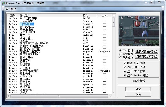 2、更改了某些ROM的文件的CRC值,文件名以匹配MAME