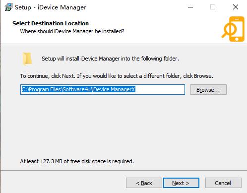 安裝向?qū)J(rèn)設(shè)置的軟件默認(rèn)安裝路徑為C:\Program Files\Software4u\iDevice ManagerX