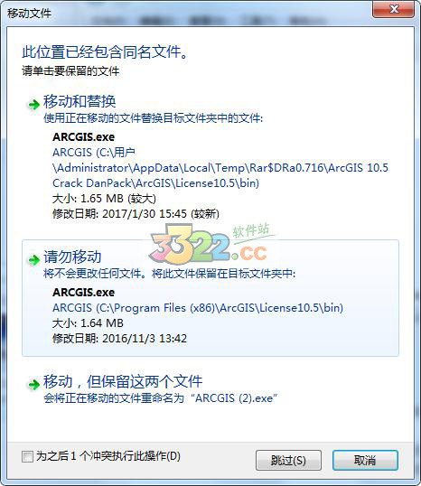 (x86)\ArcGIS\Desktop10.5\bin覆蓋原文件,其中X為用戶自己選擇的磁盤。