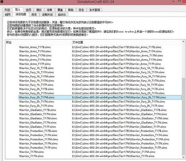 另外,Warrior_T17M.simc檔案是將T17M級(jí)別所有專精的戰(zhàn)士進(jìn)行橫向比較,Warrior_T17N.simc檔案是將T17N級(jí)別所有專精的戰(zhàn)士進(jìn)行橫向比較。