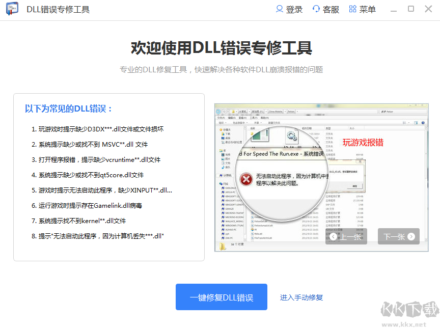 2.選擇一鍵修復DLL錯誤或者進入手動修復