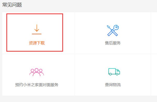 1、登陸小米官方網(wǎng)站,切換到“服務(wù)”選項(xiàng)卡,點(diǎn)擊“常見問題”欄目中的“資料下載”項(xiàng)進(jìn)入。