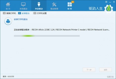 第二步,安裝驅(qū)動。安裝打印機(jī)驅(qū)動無需再去官網(wǎng)下載驅(qū)動,驅(qū)動人生一站式搞定。搜索到打印機(jī)之后,驅(qū)動人生會自動搜索與該打印機(jī)匹配的打印機(jī)驅(qū)動,直接進(jìn)行安裝。打印機(jī)程序安裝完成之后,繼續(xù)點擊下一步。