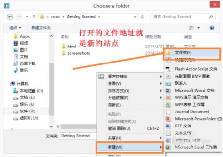 左鍵點(diǎn)擊文件夾的名字,就可以打開Open Folder,我們就可選擇或者新建一個(gè)文件夾作為網(wǎng)站站點(diǎn)。