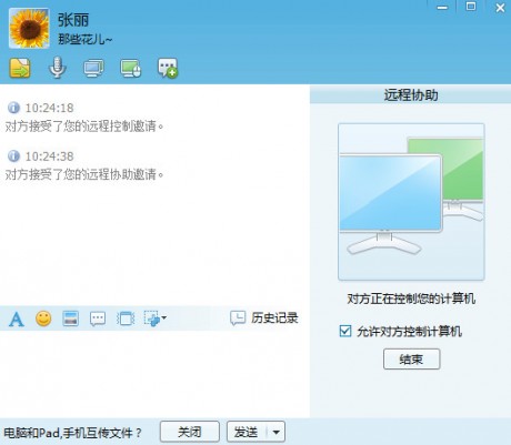 1.遠程控制,申請控制對方的計算機,對方接受請求后,可以查看對方計算機桌面并進行控制。